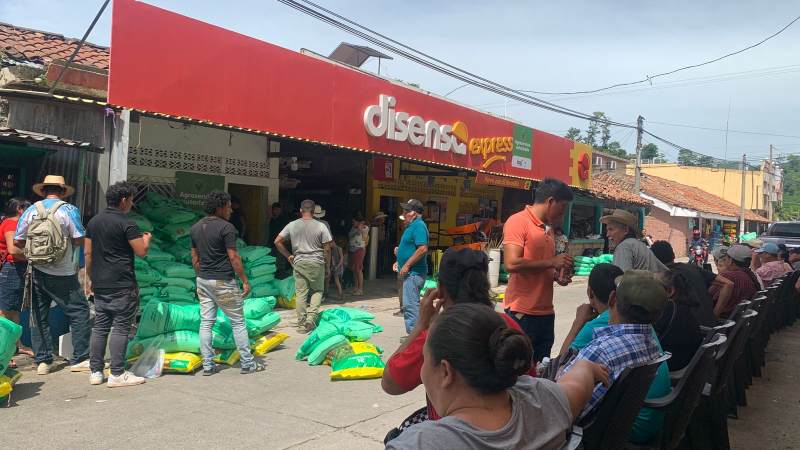 Agricultores de Lislique, adquieren insumos agrícolas con la tarjeta canjeable.